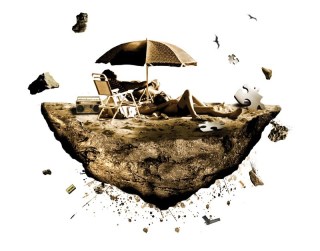 | Foto de la portada. Un terruño árido a la deriva con gente encima tomando el sol. ¿Qué país es? |